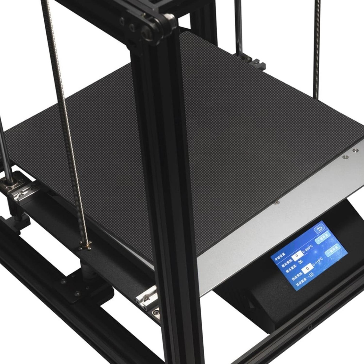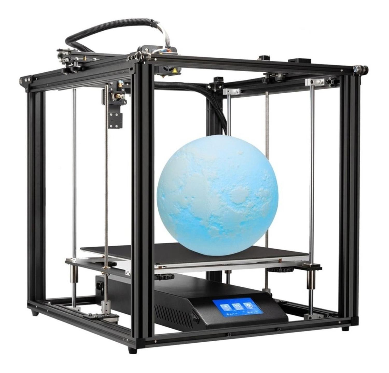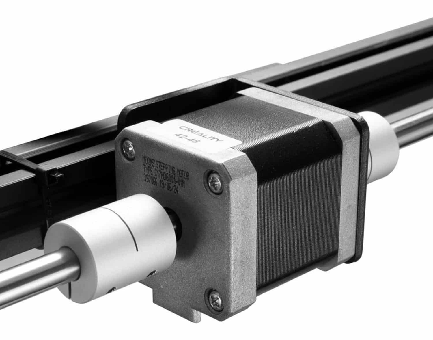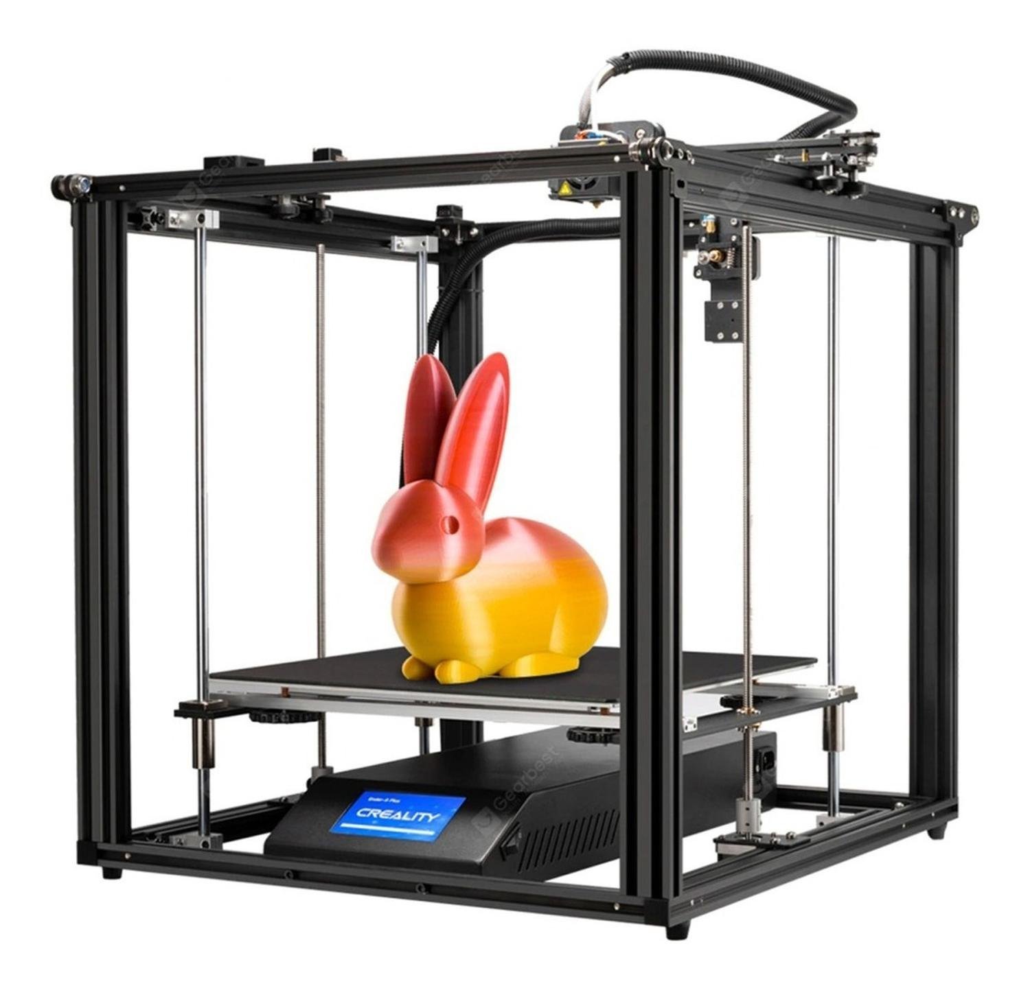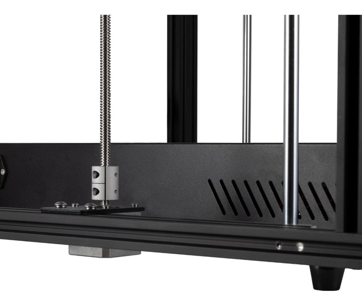 Al igual que la Ender 5, la versión Plus también utiliza un diseño Gantry, lo que significa que el cabezal de impresión está dispuesto en la parte superior de la estructura de la impresora, y que la cama de impresión se desplaza hacia abajo sobre el eje Z. También en este caso cada uno de los ejes es accionado por un motor paso a paso específico, y el motor del eje Y acciona ambas correas al mismo tiempo; en este sentido no hay muchos cambios. Para proporcionar suficiente estabilidad al eje Z, la cama de impresión ampliada está montada sobre cuatro barras y dos tornillos guía, en lugar de las dos barras utilizadas en la Ender 5 tradicional.